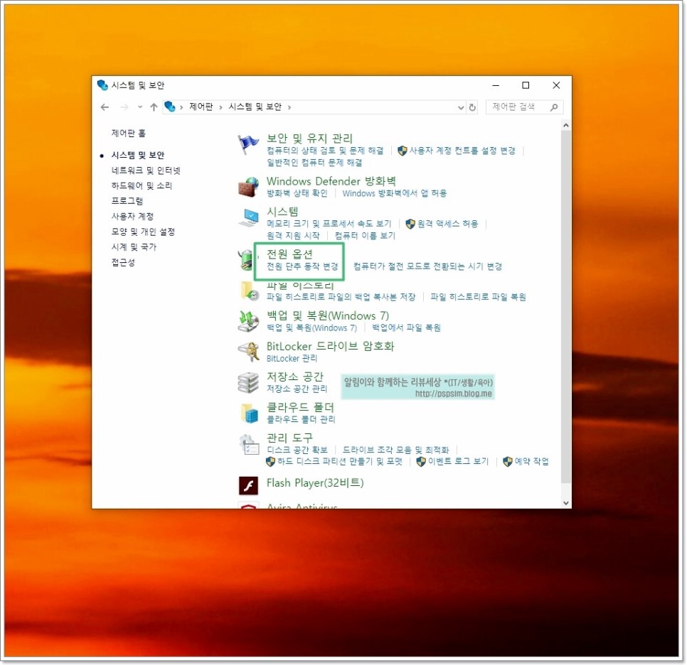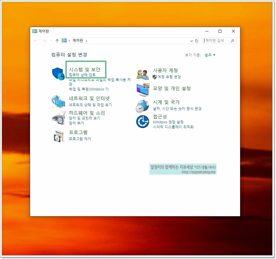 그리고나서 "시스템 및 보안" 을 눌러주세요.