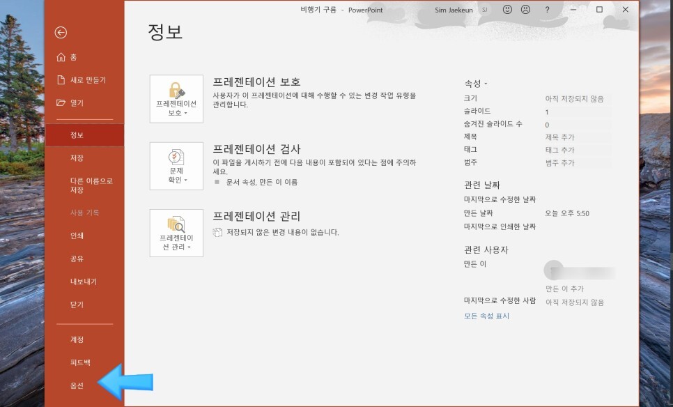 여기에서 제일 밑에 쪽을 보시면 옵션을 볼 수가 있습니다.이것을 눌러 주세요.