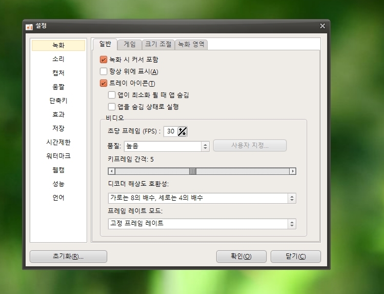 무료 동영상 녹화 프로그램 옵션 설정하는 방법