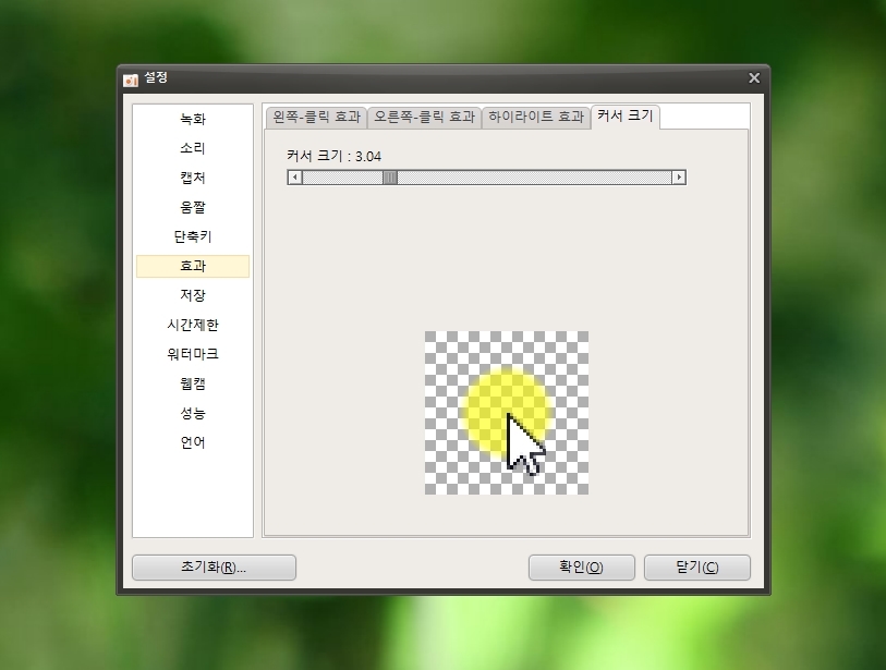 커서의 모양 및 크기 뿐만 아니라 하이라이트 효과도 조정할 수 있으니 참고하세요.