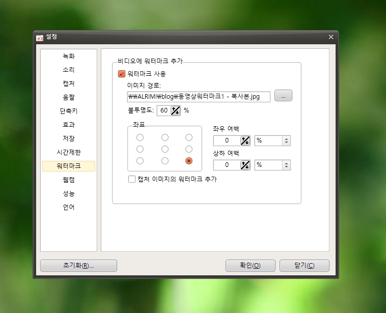 그리고 요즘에 워터마크들도 많이들 넣으시던데요..워터마크도 이렇게 넣어주면 사용할 수가 있고 위치랑 조절할 수가 있답니다.