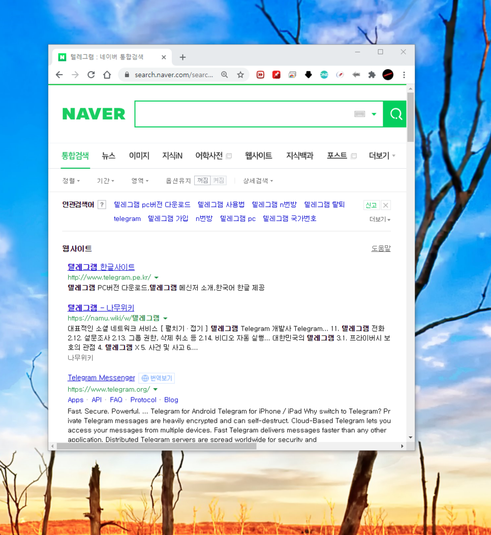 먼저 네이버에서 텔레그램 pc버전 검색을 하면 곧바로 텔레그램(telegram) 한글 사이트로 연결 할 수가 있습니다.
