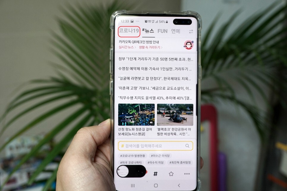그러면 위와 같이 뉴스가 나오는데 제일 위에 탭에서 “코로나”를 선택 해 줍니다.