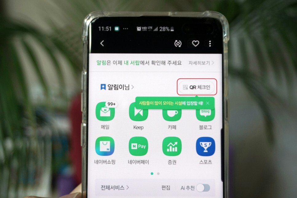 여기서 네이버 QR체크인을 눌러주세요