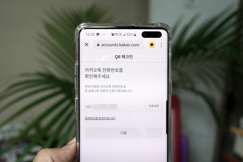 이것도 네이버와 마찬가지로 휴대폰 인증을 한번 거친 후에 QR코드가 나옵니다.