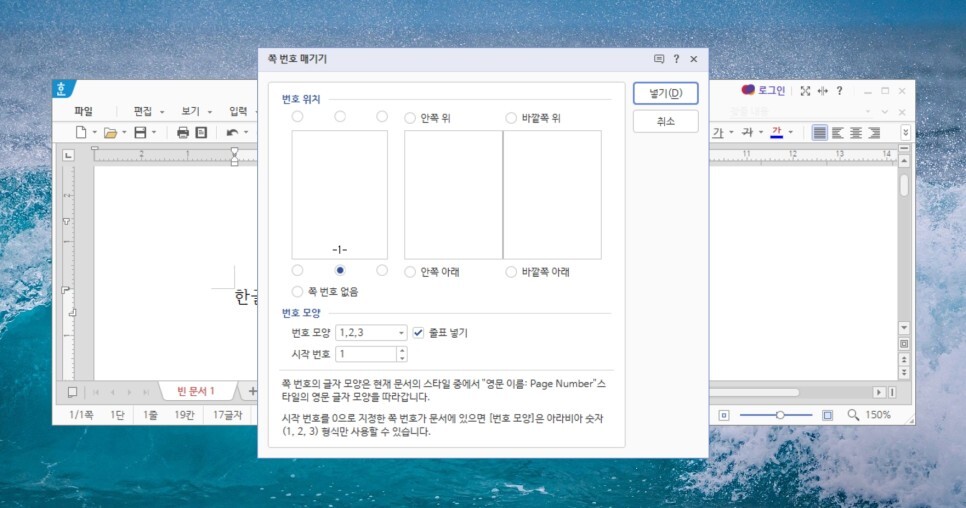 해보시니까 정말 한글 페이지 번호(쪽번호) 넣는 방법이 쉽죠?