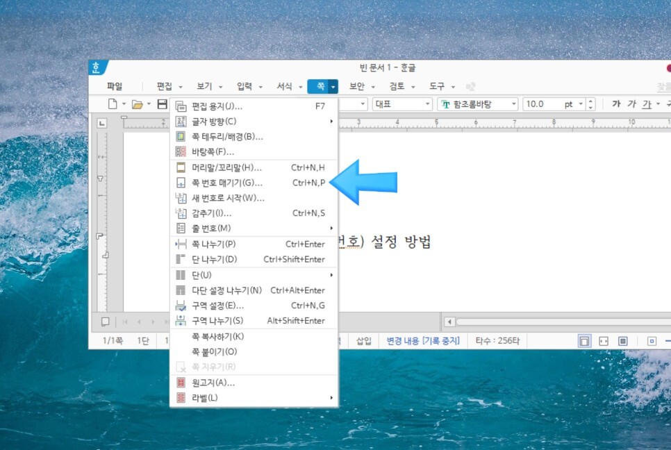 이번시간에는 한글 쪽번호 매기기, 즉 페이지 번호 넣는 방법에 대해서 알아보고자 합니다.