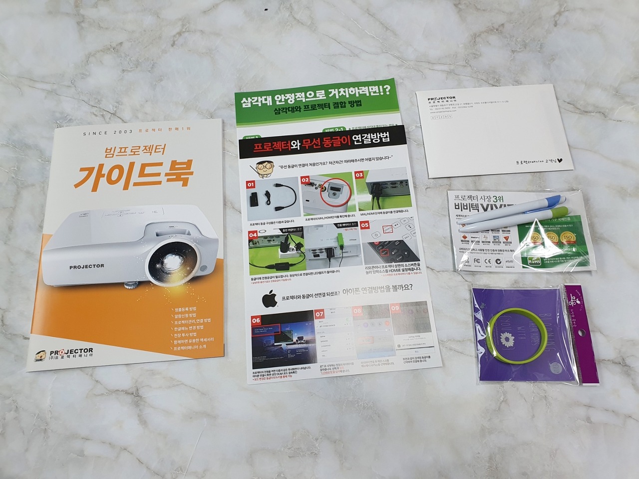 비비텍은 프로젝터 매니아에서 유통하고 있는데 스크린, 동글, 빔프로젝터용 삼각대 등 다양한 액세서리를 같이 취급하고 있다. 특히 여기서 제공하고 있는 가이드북은 실제 사진과 함께 친절하게 설명되어 있어 초보자도 누구나 쉽게 설치하고 사용할 수 있도록 도와준다.
