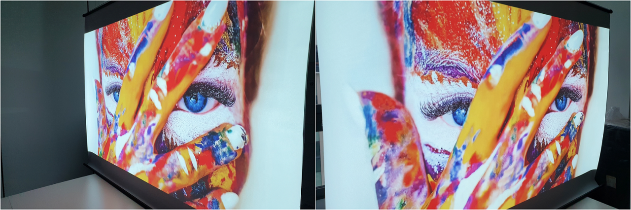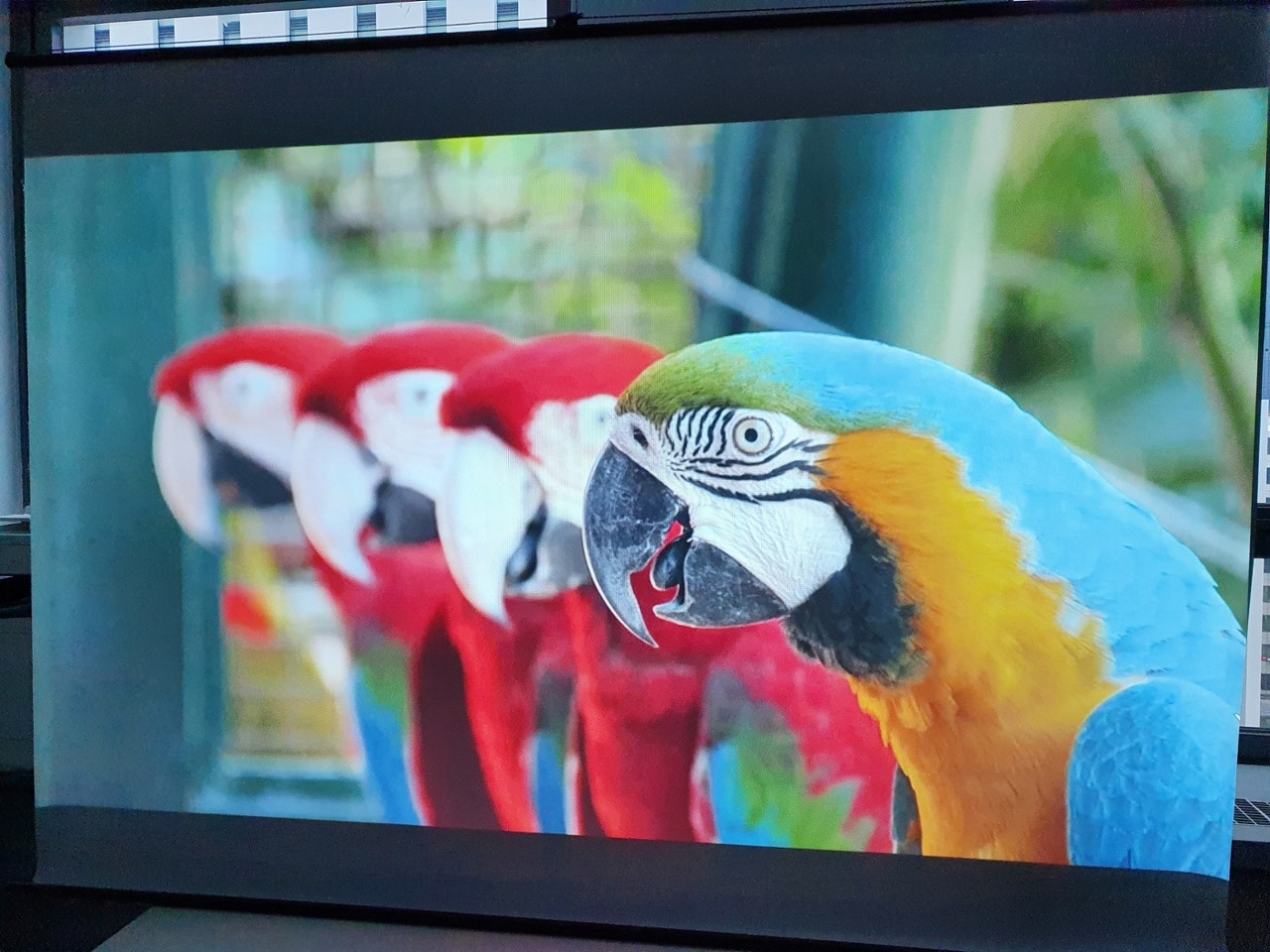 저가형의 경우 중앙부분은 포커스나 핀트가 잘 맞아서 잘 보이나 가장자리 부분으로 갈수록 흐릿하게 보이는 경우가 있다. 특히 자막부분이 문제가 있을 수 있는데 WXGA 고해상도덕분에 자막 글씨 또한 뚜렷하게 잘 보인다.