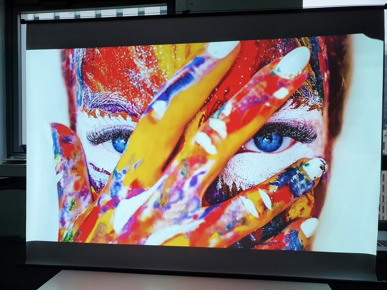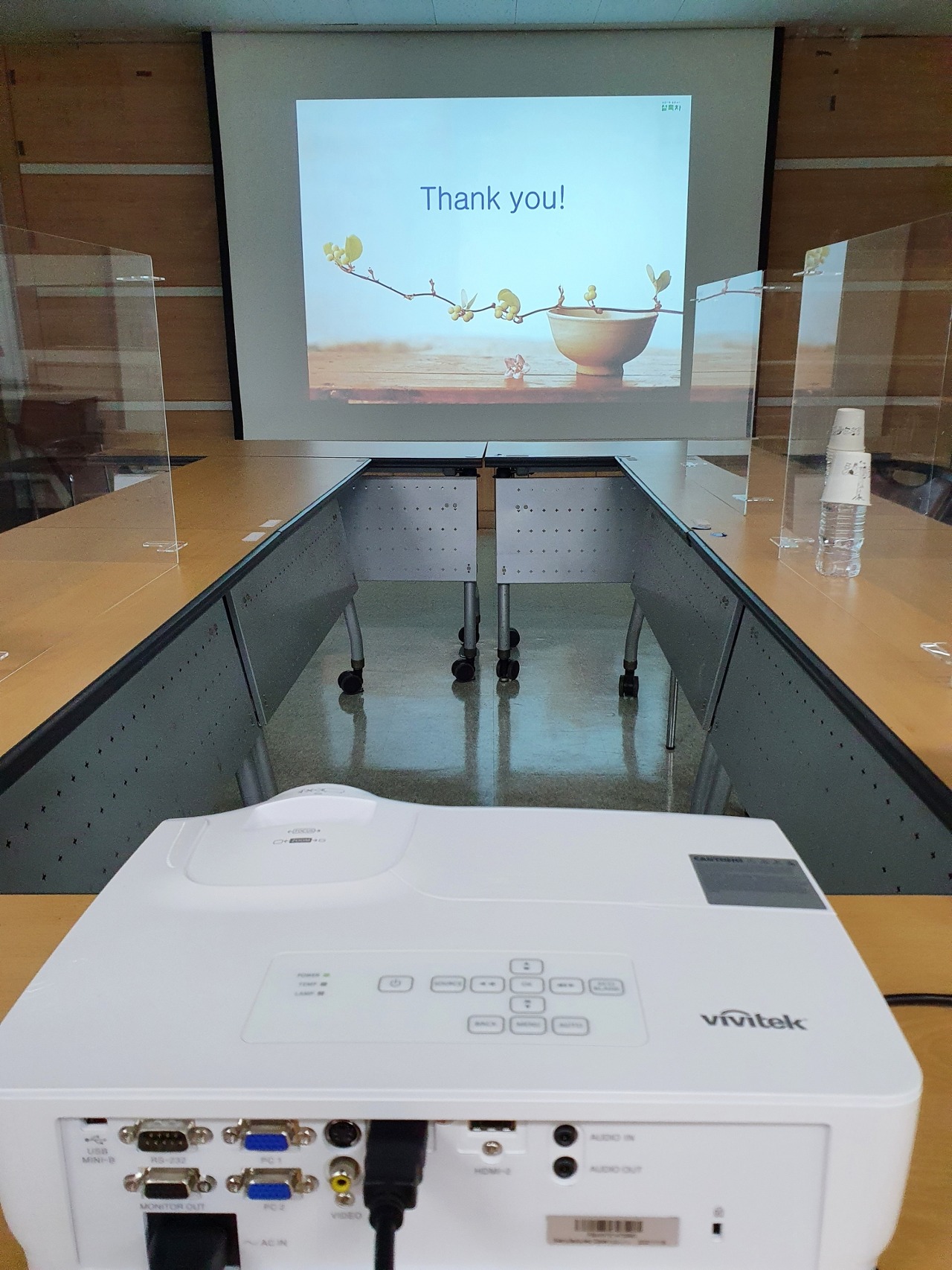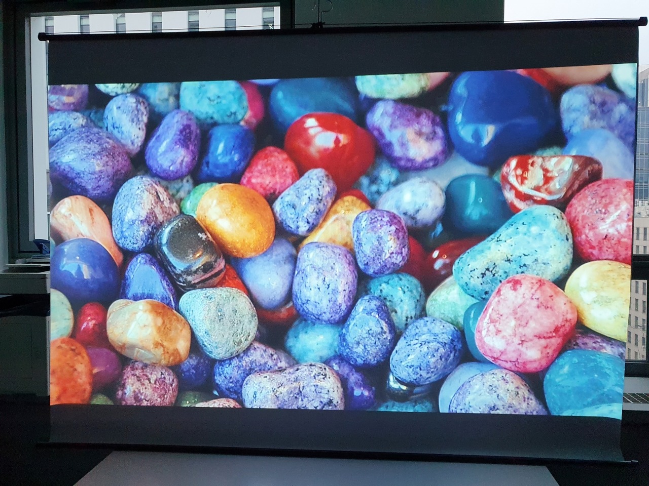 이번에는 가정이 아닌 오피스 환경에서의 사용하는 것을 한번 살펴보겠다. 먼저 15명 규모의 밝은 사무실 환경에서도 전혀 무리 없이 투사가 가능하였다.
