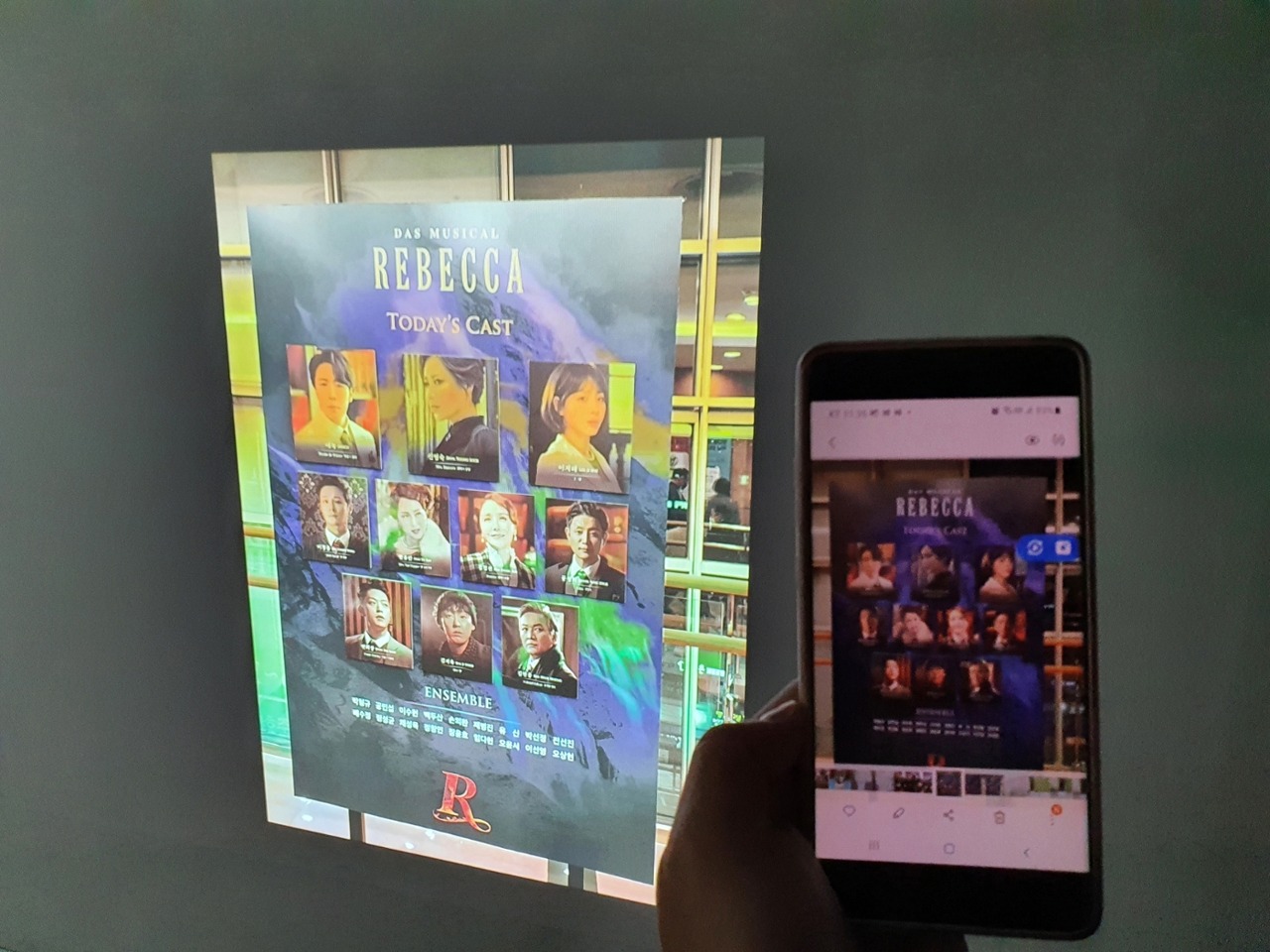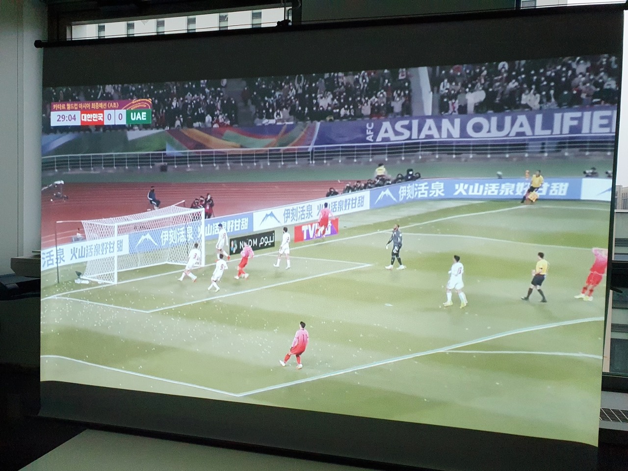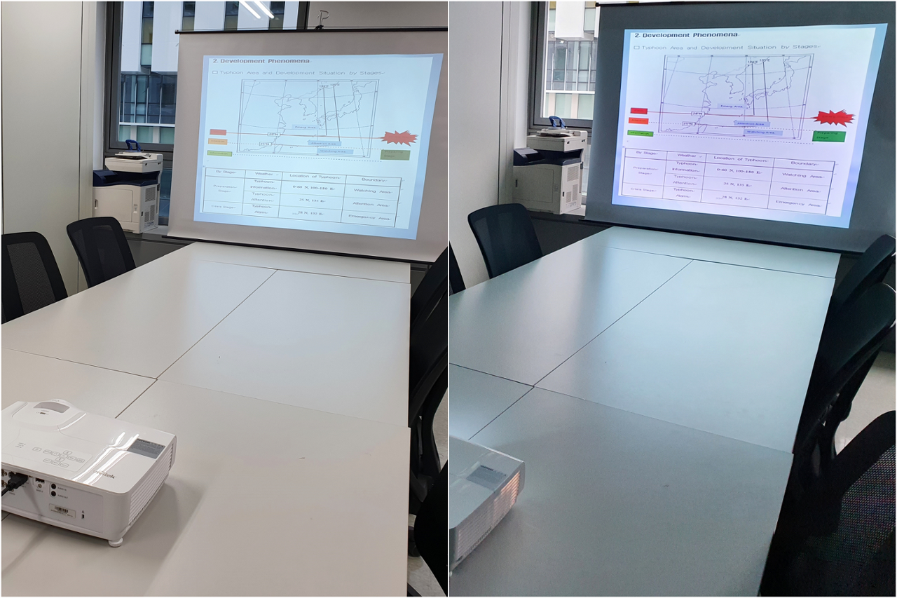 이번에는 가정이 아닌 오피스 환경에서의 사용하는 것을 한번 살펴보겠다. 먼저 15명 규모의 밝은 사무실 환경에서도 전혀 무리 없이 투사가 가능하였다.