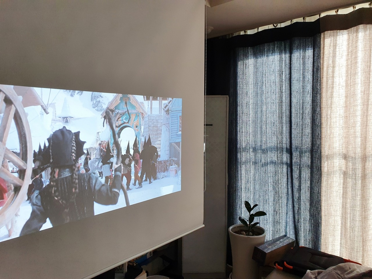 이번 크리스마스때 외부도 못 나가고 집에서 불멍과 크리스마스의 느낌을 내기 위해서 가족들과 파티를 할 때 벽에 영상을 출력하니, 집안 분위기가 아늑하면서도 포근한 느낌이 밀려오며 기분이 좋아지는 것이 매번 분위기가 필요할 때마다 빔프로젝터를 꺼내게 만들 것 같다.