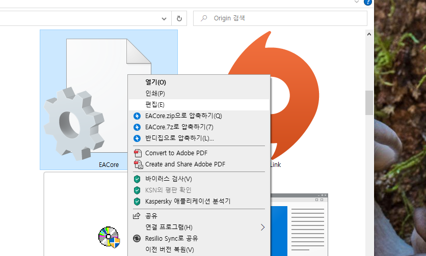 위의 폴더에 들어가시면 EACore.ini 파일이 있고 이것을 선택 후 마우스 오른쪽 버튼을 누르고 편집을 누르면 됩니다.