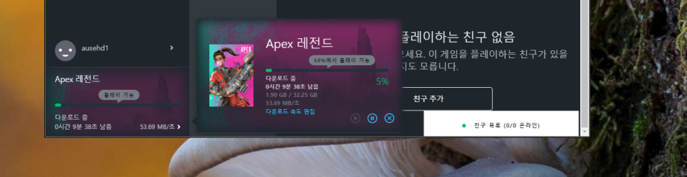 컴퓨터를 포맷해서 다시 APEX를 다운로드 받으니 오리진 다운로드 속도가 정말 느려서 답답하더군요.