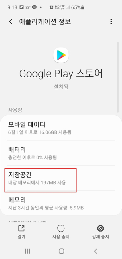 그리고 구글 플레이스토어를 선택하면 위와 같은 하면이 나오고 저기에서 "저장공간"을 눌러줍니다.