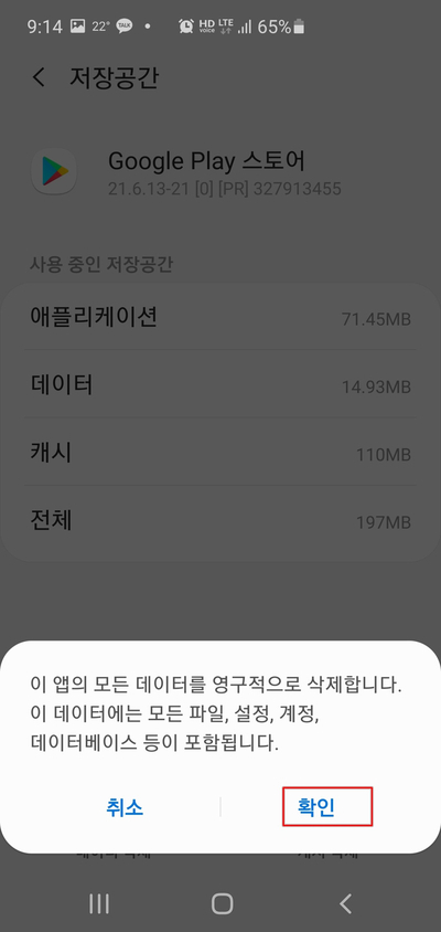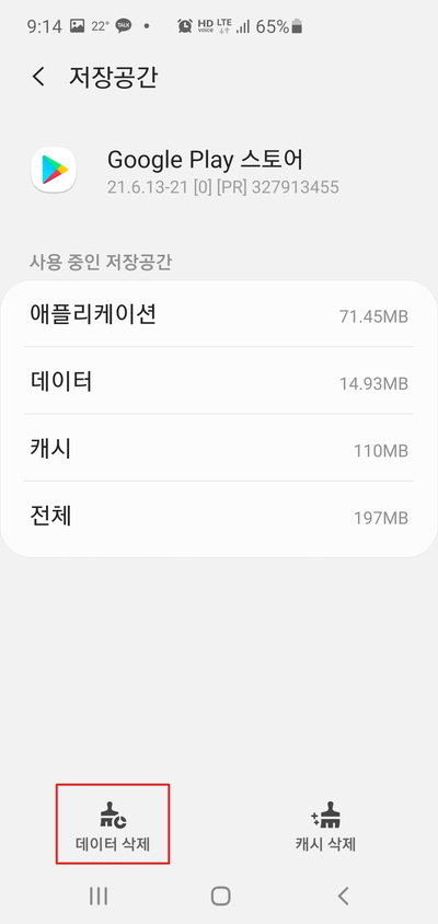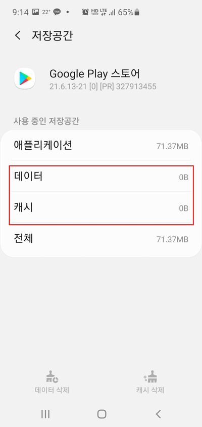 이를 해결 하기 위해서는 구글플레이스토어 앱의 임시 데이터 및 캐시를 삭제 해 주면 됩니다.