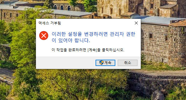 여기서 관리자 권한을 요구 할 때 "계속"을 눌러서 허용을 해 주면 됩니다.