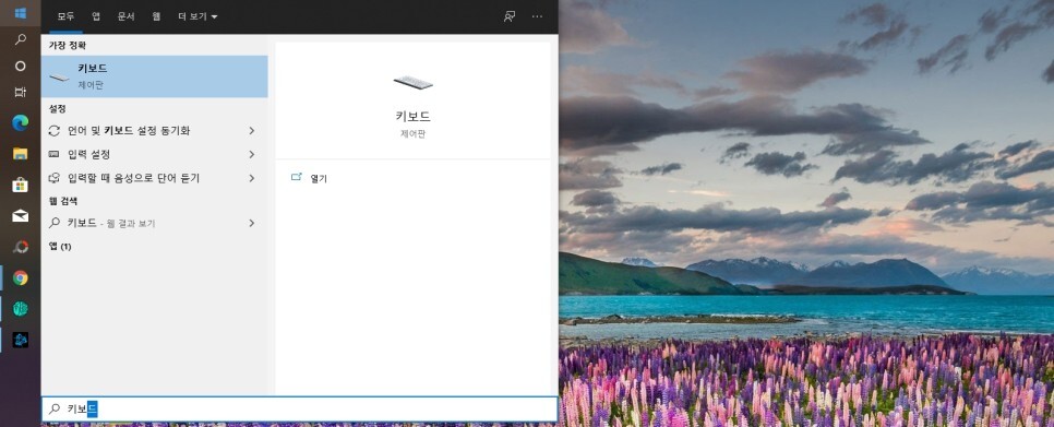 여기서 "키보드"라고 입력을 하면 위와 같이 가장 정확한 항목 하면서 제어판의 키보드설정할 수 있는 메뉴가 나옵니다.