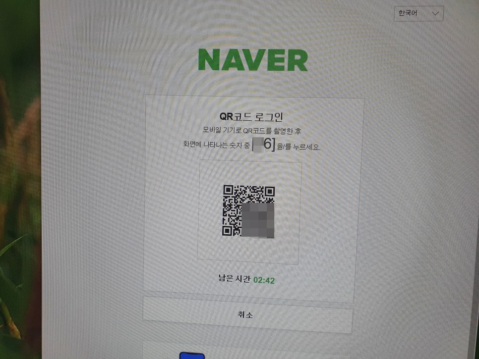 그러면 여기에 QR코드 로그인이라고 화면이 나오는데 QR코드와 숫자가 나옵니다.