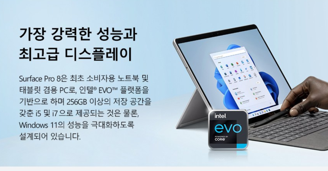 강력한 성능과 최고급 디스플레이를 장착하여 다시 태어난 서피스 프로8, 탐나죠?