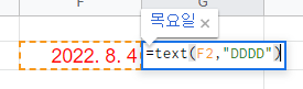 =TEXT(셀,"DDDD")