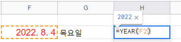 =YEAR(셀)