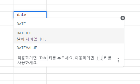 구글 엑셀 스프레드시트에도 날짜 관련 함수가 많습니다.