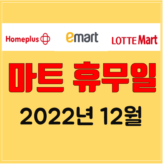 이상으로 22년 12월 이마트 홈플러스 롯데마트 대형마트 휴무일에 대해서 알아보았습니다.