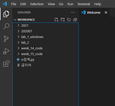그러면 위와 같이 visual studio code 작업폴더 workspace 변경이 됩니다.