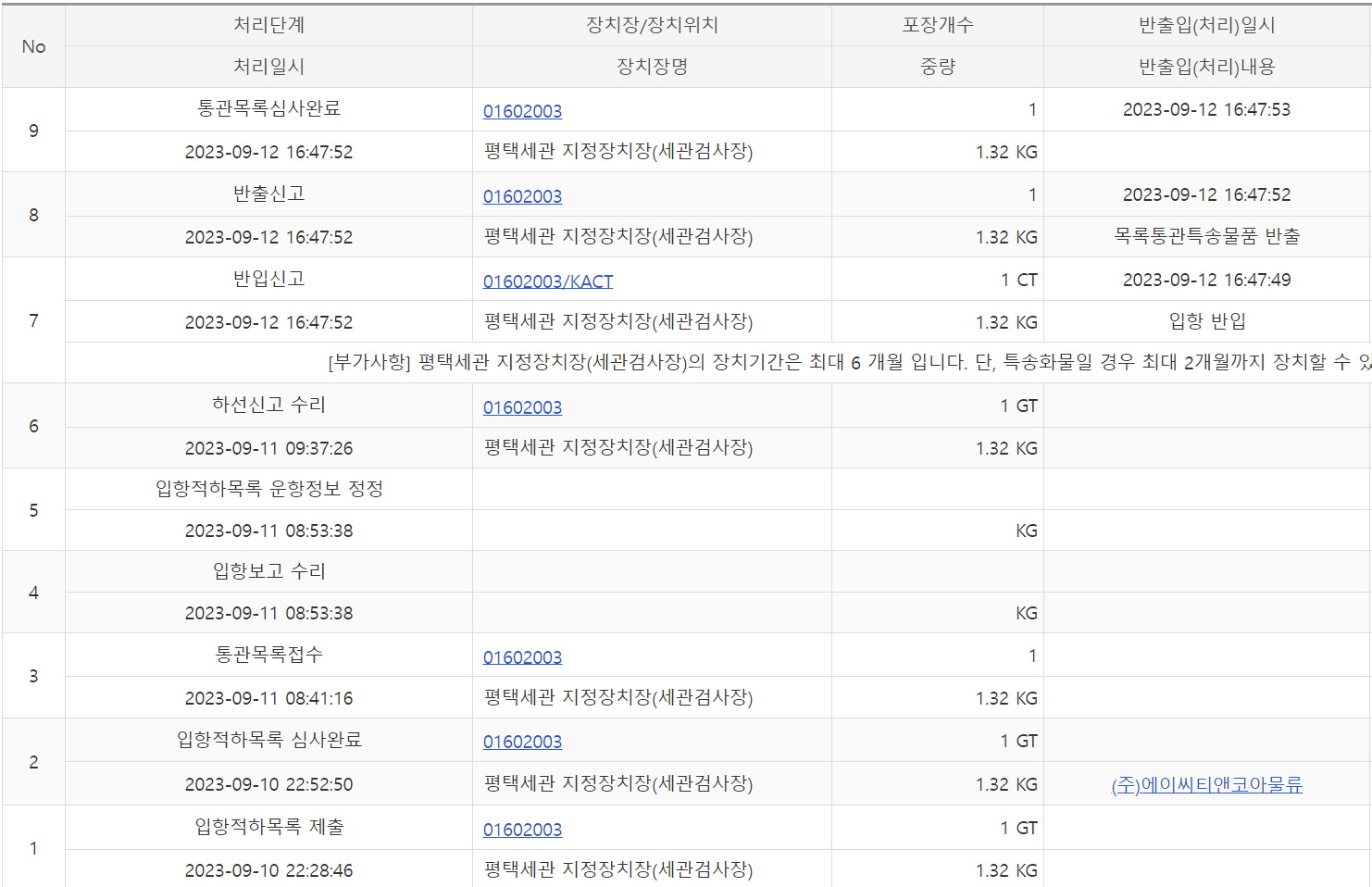 물류창고에서 배송 정보를 전자상으로 전달받았습니다