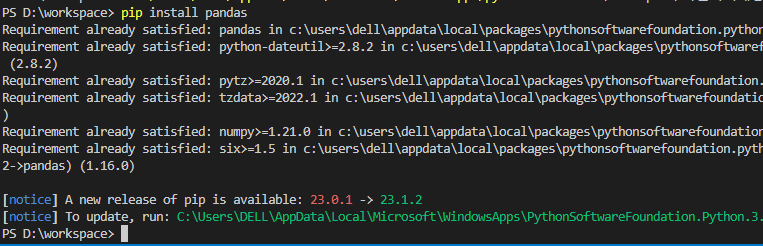 설치는 pip install pandas 명령어로 실행하시면 됩니다.