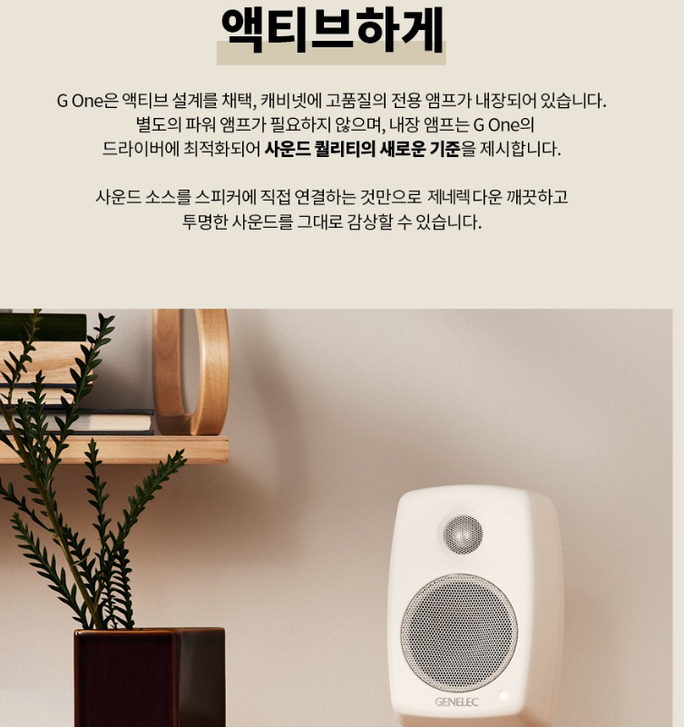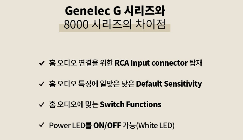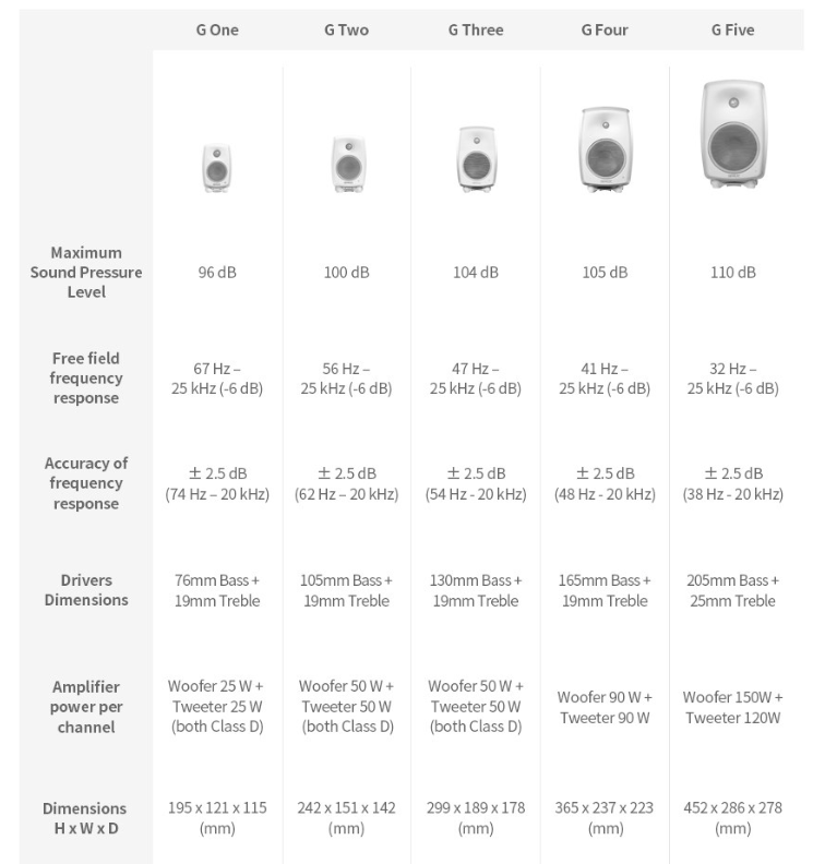 Genelec G1은 홈 오디오 및 일반 사용자를 위한 모델로, 고품질 사운드를 일상에서 즐기기에 적합합니다.
