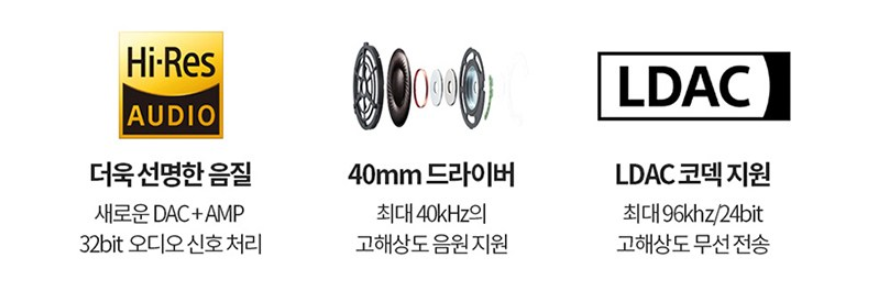 1. 최고급 음질: 40mm 드라이버 유닛과 LDAC 코덱을 통해 놀라운 음질을 제공합니다. Hi-Res Audio 지원으로 더욱 선명하고 깊은 음향을 경험할 수 있습니다.