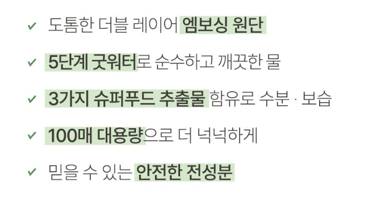 ㅇ아이의 피부 민감도 고려하여 제조된 물티슈로 피부 자극성 최소화