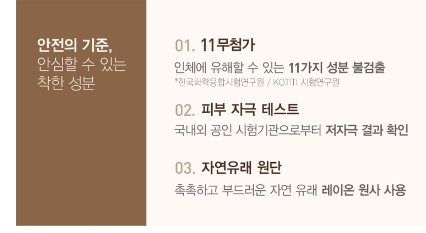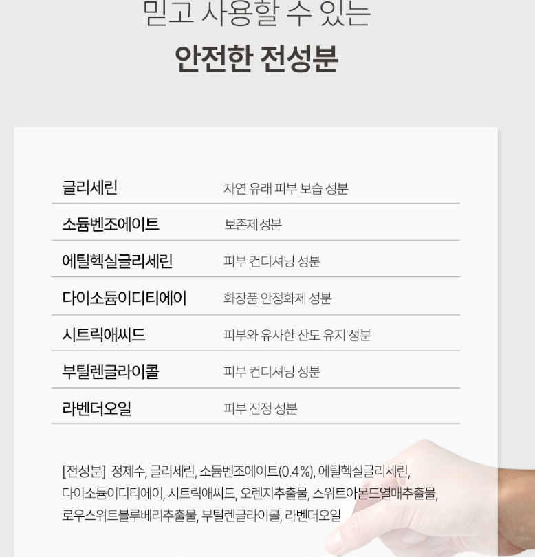화학 성분 없이 향료와 알코올 미포함으로 피부와의 접촉 시 불편함 없는 사용