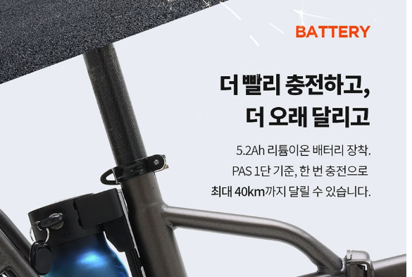 충전 용량이 5.2Ah로 출퇴근 및 짧은 이동에 적합합니다.