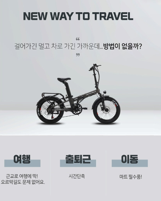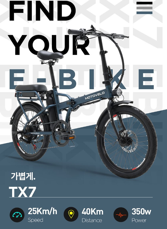 세 번째로 소개할 모토벨로 TX7 DUAL 전기자전거는 접이식 디자인으로 편리한 보관과 이동이 가능한 제품입니다.