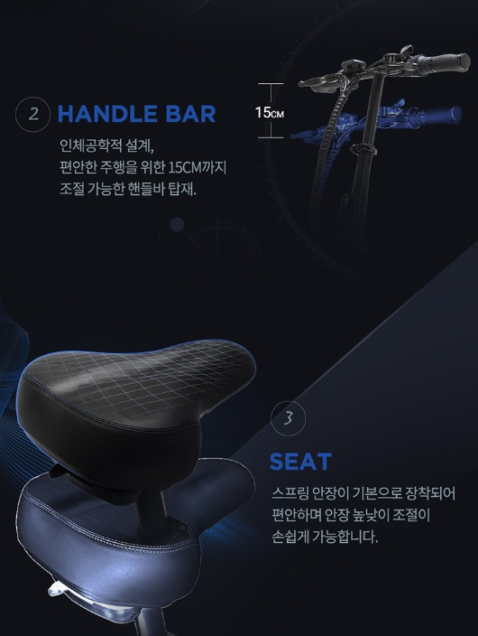 - 강력한 350W 모터와 48V 배터리로 빠른 가속과 장거리 이동을 가능하게 합니다.
