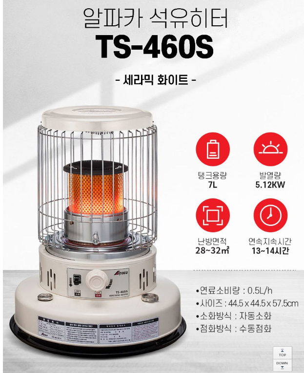1.알파카 캠핑 석유히터 세라믹 화이트 TS-460