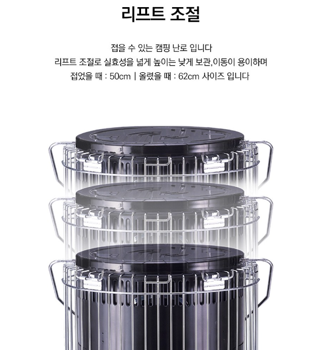 휴대성과 강력한 성능: 소형이지만 뛰어난 열 효율을 제공하여 캠핑 지역에서도 효과적으로 사용할 수 있습니다.