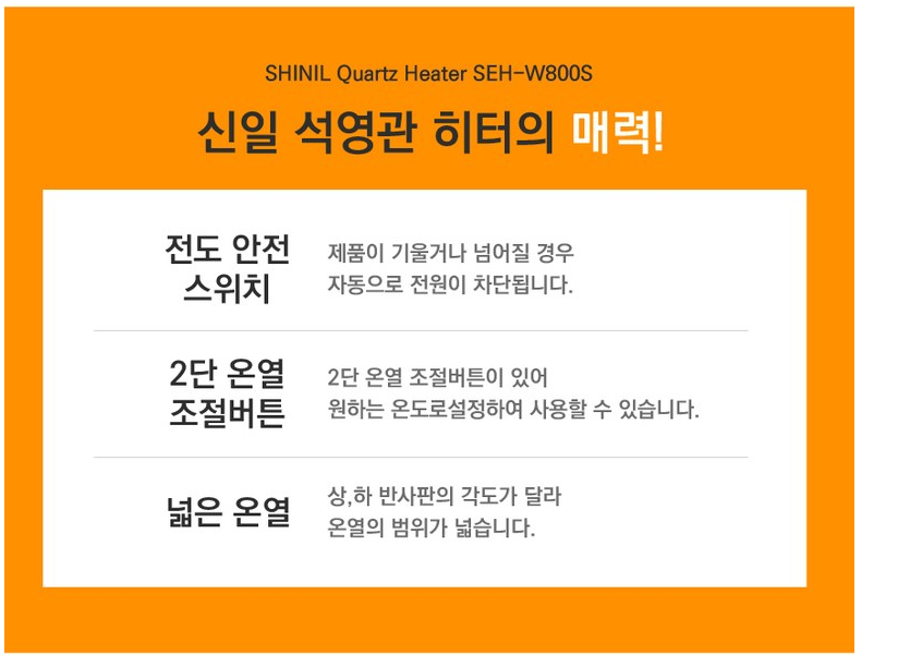 1. 신일 전기 석영관 히터 SEH-W800S