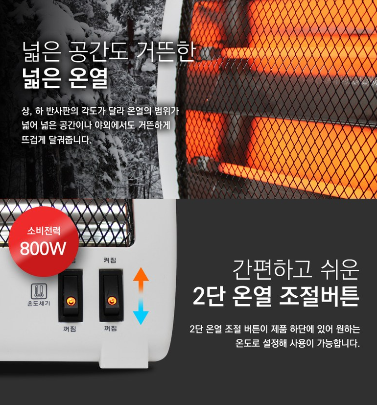 ㅇ 가장 먼저 소개해드릴 제품은 신일의 SEH-W800S입니다. 이 제품은 석영관 히터로, 효율적인 발열과 강력한 성능으로 빠르게 공간을 따뜻하게 만들어줍니다. 그러면서도 에너지 소비를 최소화하여 전기세를 절약할 수 있어요.