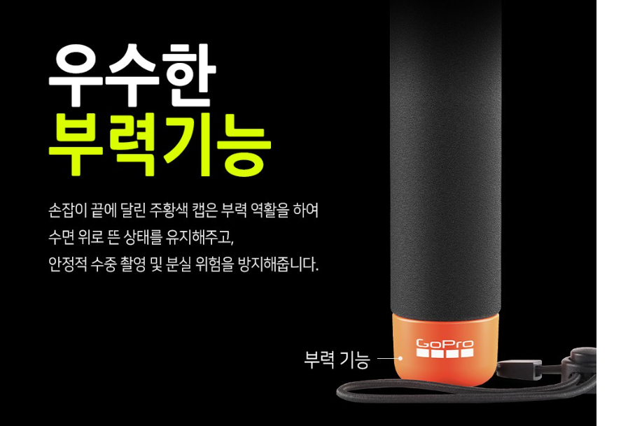 또한, 플로팅 디자인 덕분에 물속에서 떨어뜨려도 바다나 호수 바닥으로 가라앉지 않고 띄어다니기 때문에, 액션캠의 보호에도 기여합니다. 수중 스포츠에서 더 나은 촬영을 원한다면 플로팅 핸들러는 필수템 중 하나입니다.