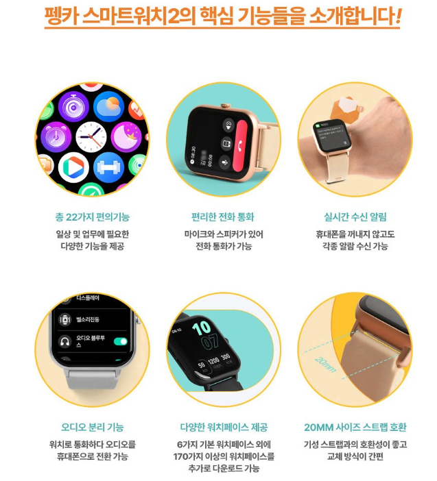 3. 펭카 스마트워치2 PSW2004 (*내가 쓰고 있는 제품, 통화까지 되는 스마트 밴드)