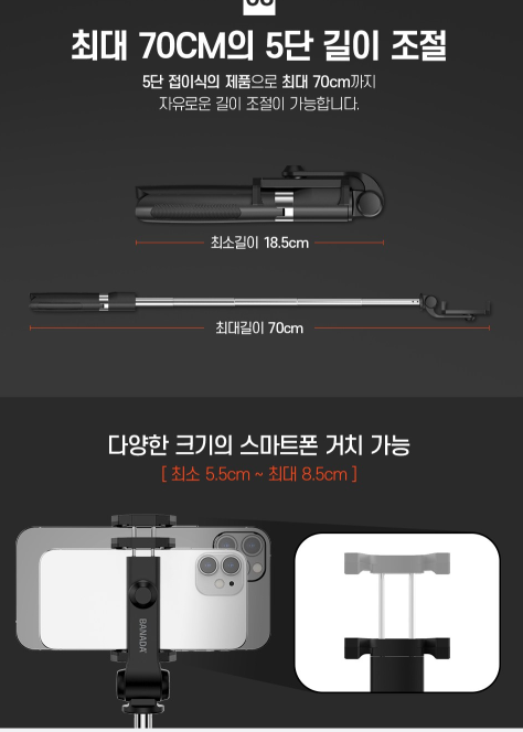 1.바나다 튤립 블루투스 삼각대 셀카봉