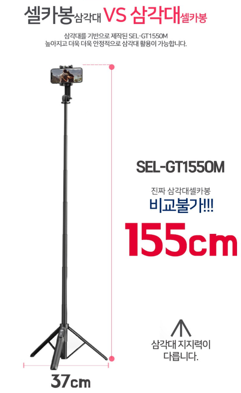 셀루미 155cm 롱레인지 무선 블루투스 올인원 삼각대 셀카봉