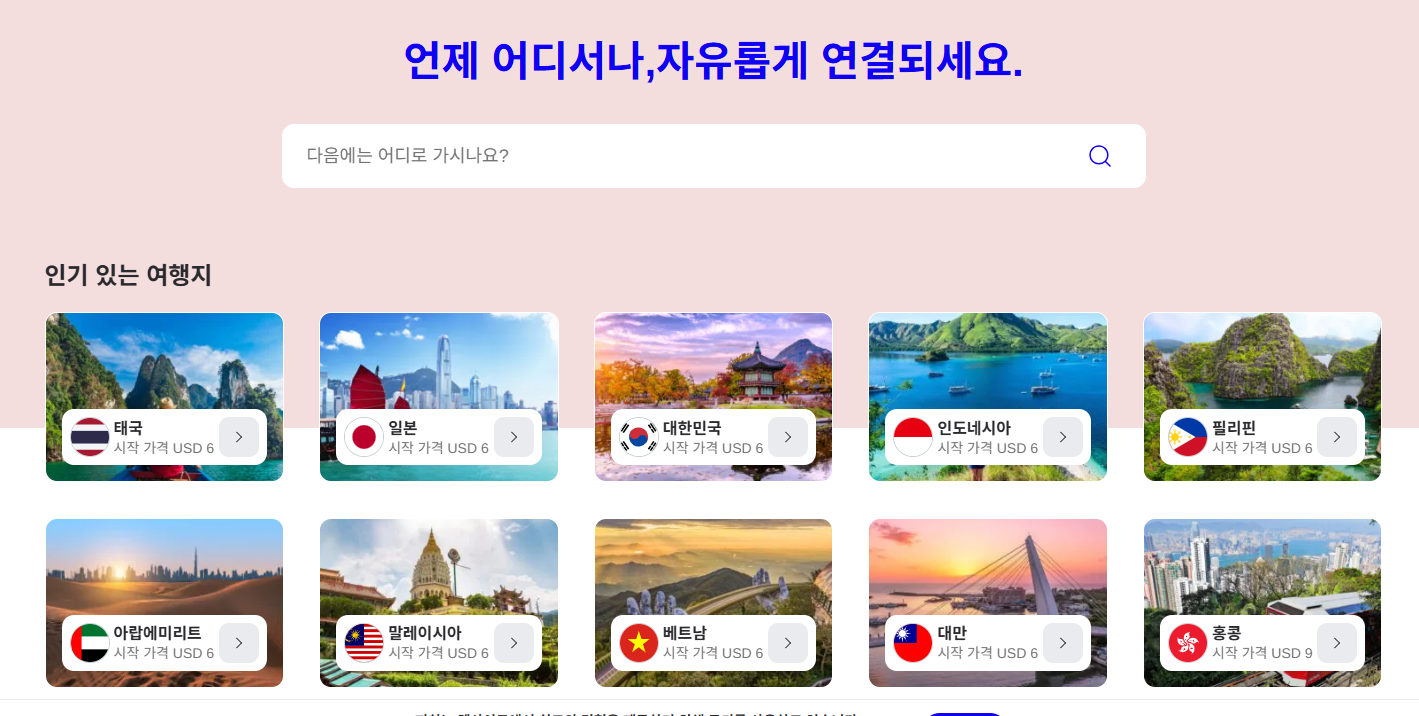 전 세계 대부분 국가 지원 – 유럽 패스, 동남아 패스 등 통합 요금제도 있음