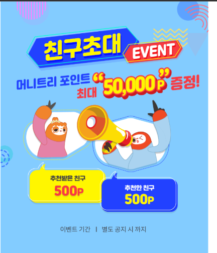추천한 사람(추천인): 친구 초대 하나당 500원 캐시 지급