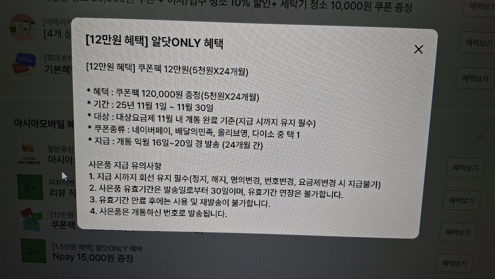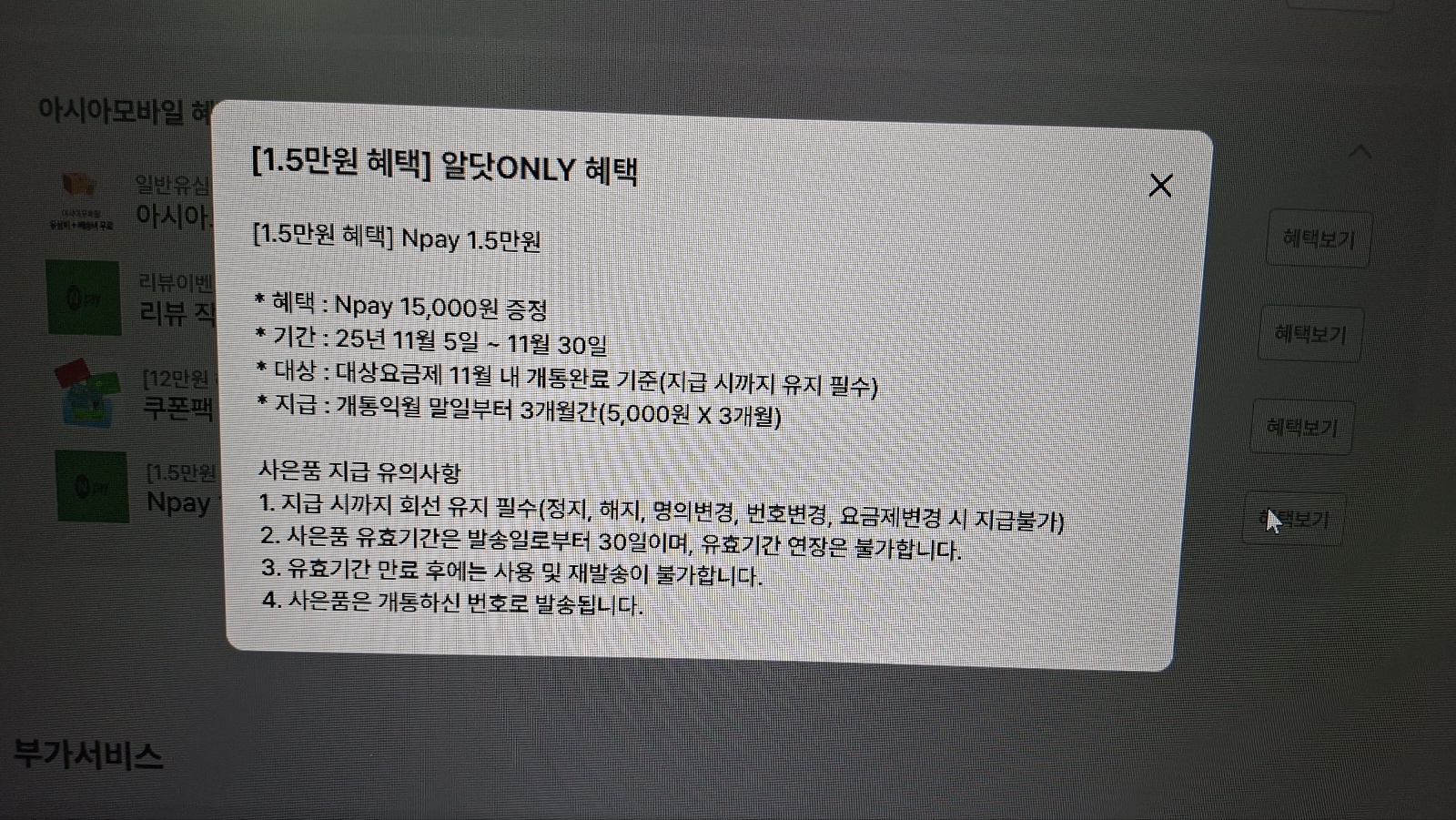 🎁 제가 받은 아시아모바일 혜택 정리