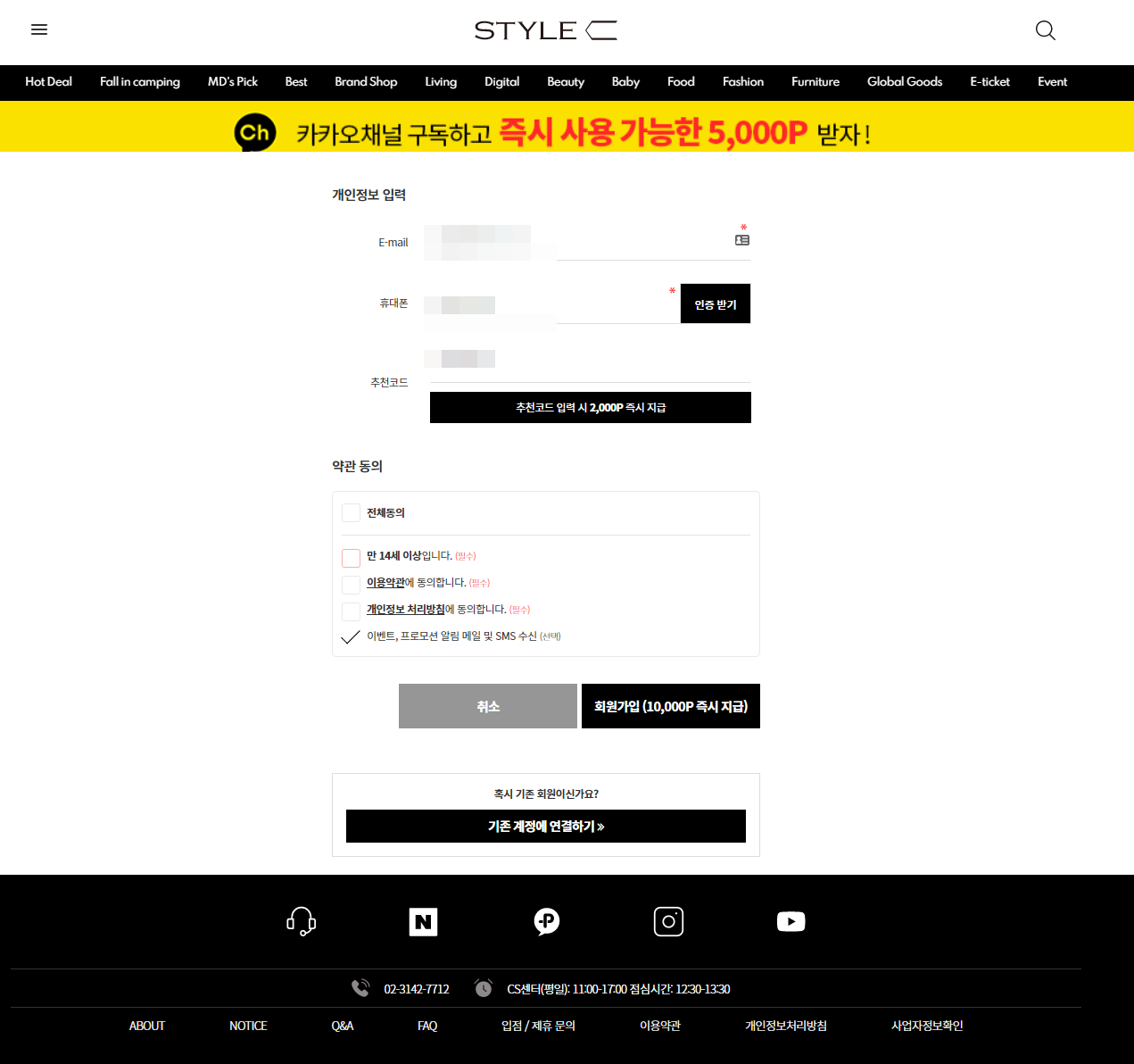 스타일씨 가입할 때 추천인 코드 입력하면 더 받을 수 있다.